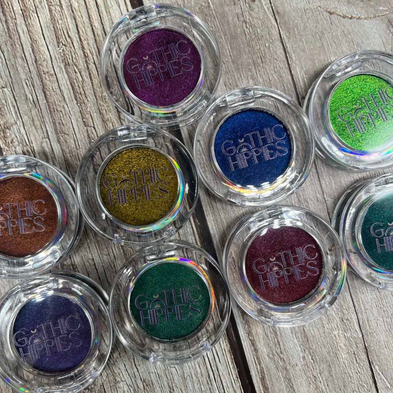Add a playful pop to your look with the Gothic Hippies Duo Chrome Lip Gloss. This shimmery gloss shifts colors as you move, creating a mesmerizing, ever-changing shine. Perfect for those who love a bold, dynamic finish that catches every eye.