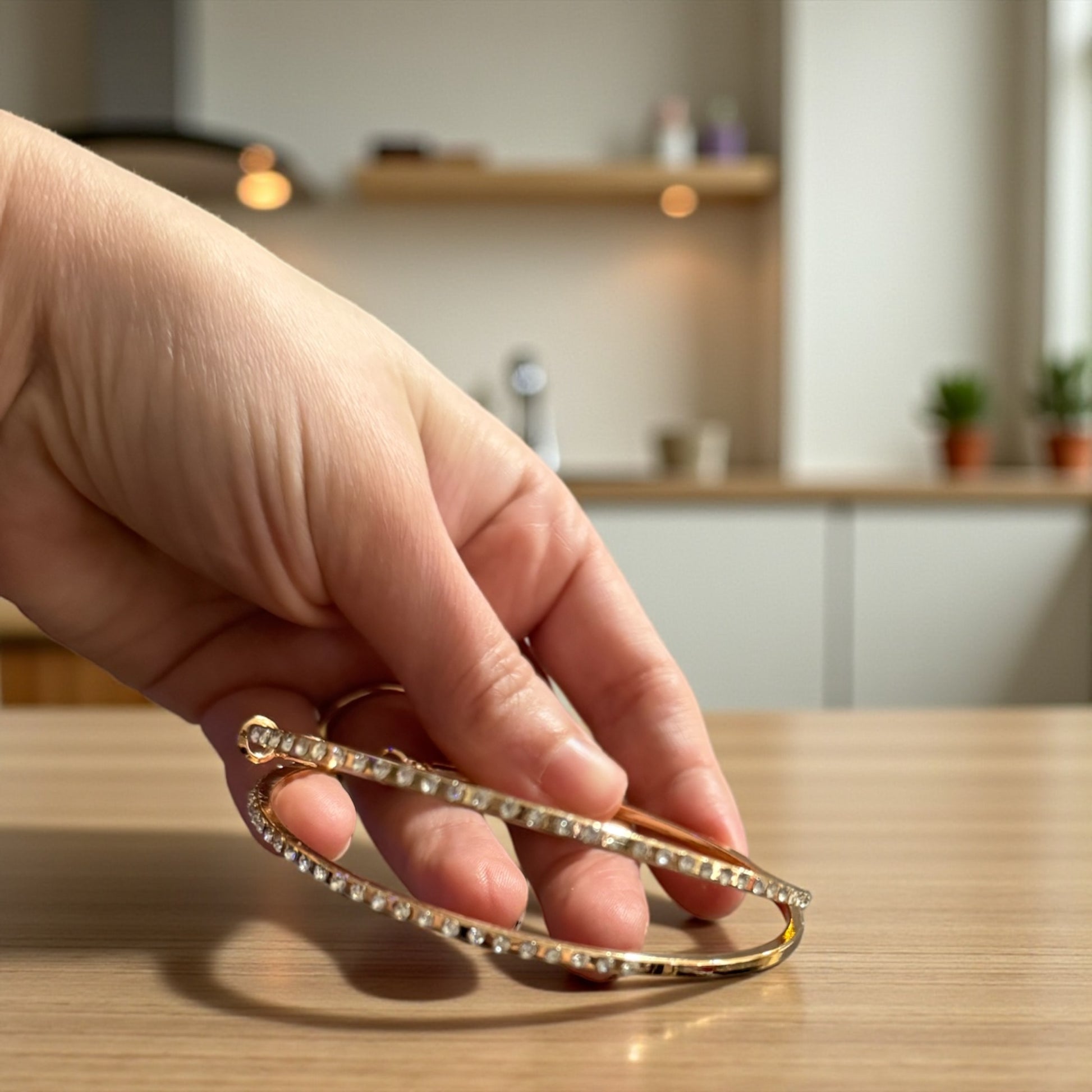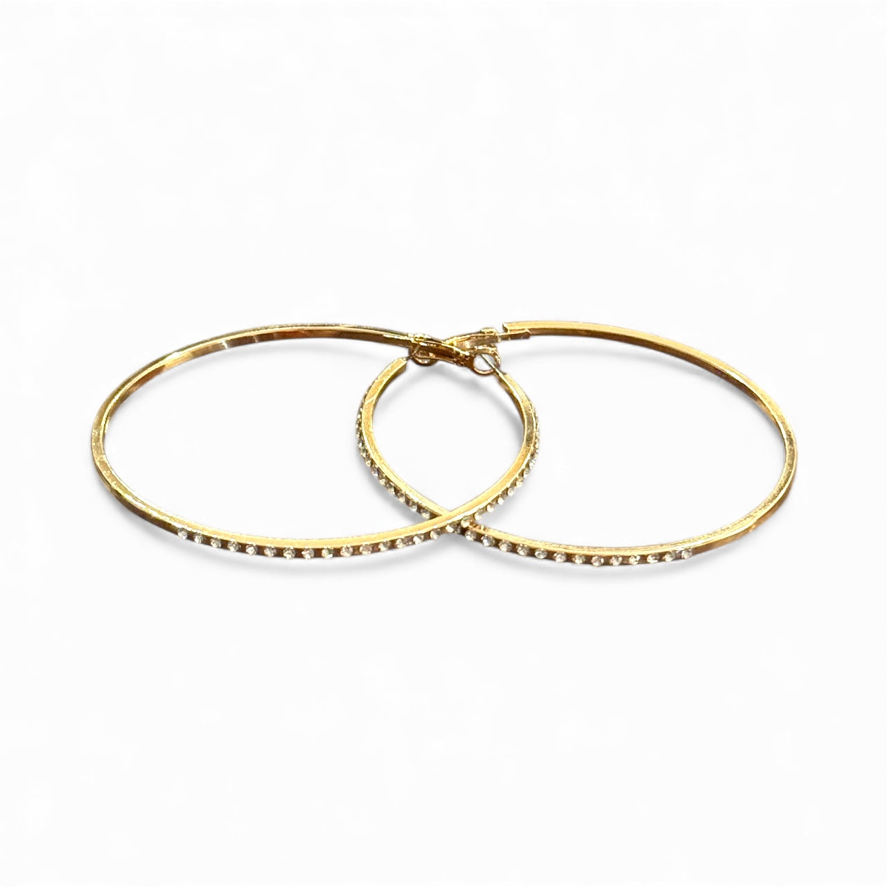 Indulge in luxury with our Large Gold Hoops With Bling. These large hoops feature sparkling AB crystals and are designed for easy opening and closing. Elevate your style with these statement earrings that are perfect for any occasion.