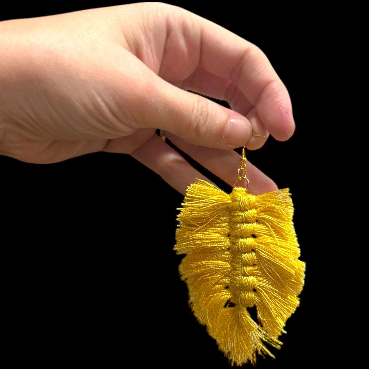 Upgrade your accessory game with our Dream Weaver Earrings. These statement pieces may look bold, but they are surprisingly lightweight. With a fun and boho vibe, these vibrant colors and retro feel will add a playful touch to any outfit. A must-have for any fashion lover.